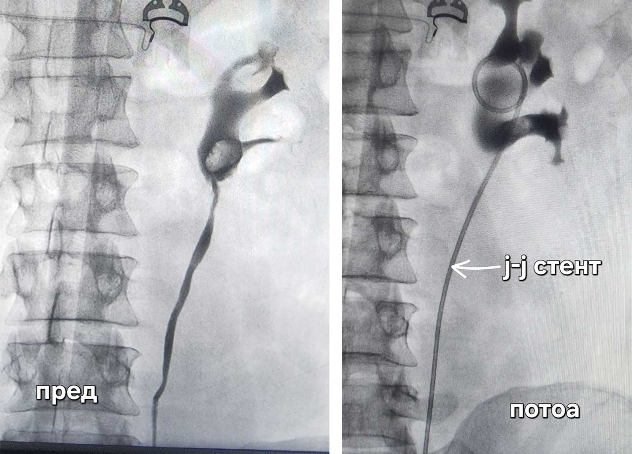 Во минатото оваа состојба секогаш се третирала со отворена хирургија, но по воведувањето на ендоскопските техники, третманот се врши преку природните отвори. Се мести т.н. џеј-џеј стент (J-J stent), односно цевче кое води од бубрегот до мочниот меур и има за цел да го празни блокираниот бубрег. Оваа метода која вклучува вградување на ваков стент во нашата болница се применува без пациентот да почуствува болка.